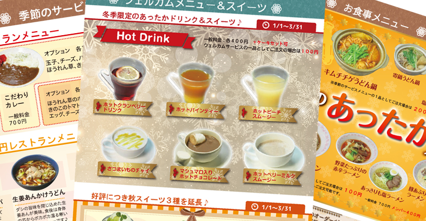 季節ごとにリニューアルされるウェルカムフード&ドリンクメニューや随時開催されているイベントの情報も満載!!